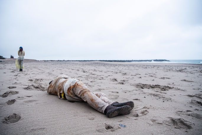 Udstyret med trådløse høretelefoner, guides publikum op gennem klitterne, ud på stranden, rundt mellem og ind i de forvitrede betonmonumenter. Her bliver der mulighed for – alene og i fællesskab – at forholde sig til sig selv som det lille menneske overfor den store verden. Den store natur. De store spørgsmål.